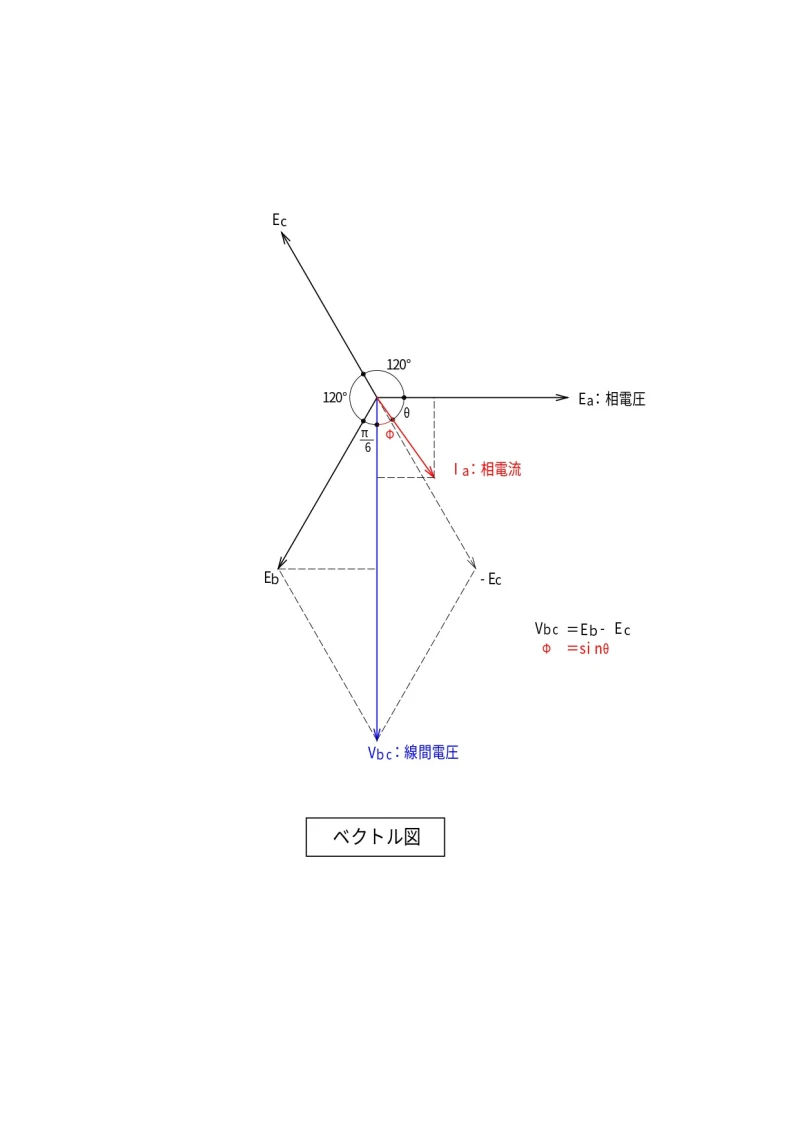 ここでVbcとIaの位相差θは、下記の関係となります。