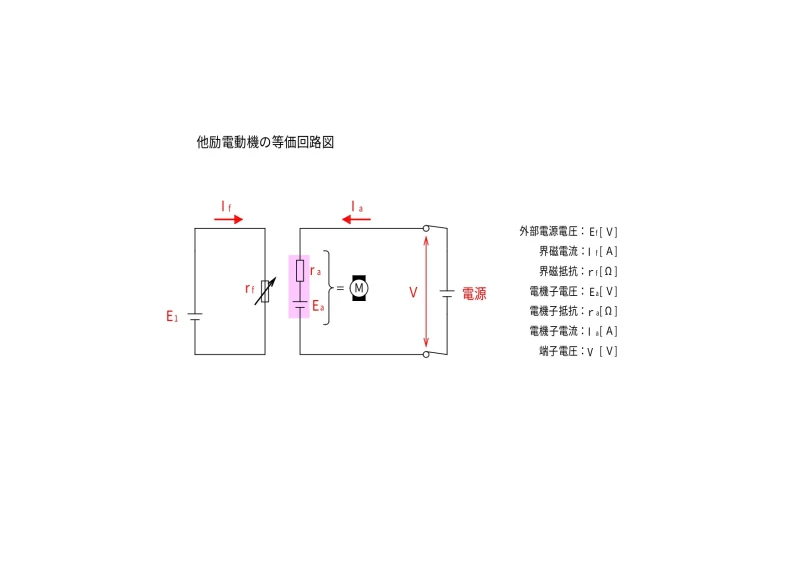 直流他励電動機とは、界磁が電機子巻線と接続されておらず、別の外部の電源により励磁される直流機です。